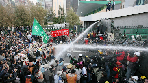2005년 홍콩 WTO 투쟁 당시 경찰의 탄압에 직면한 한국 농민들(Felix Wong/사우스차이나모닝포스트)
