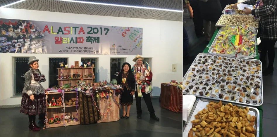 알라시따 개막식과 볼리비아 전통간식(사진: 주한볼리비아다민족국가 대사관)